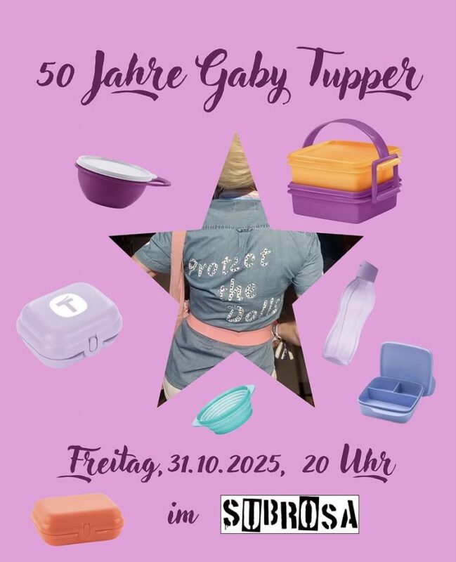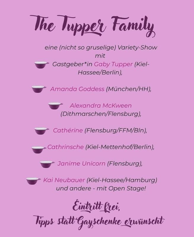 Am Freitag, den 31.10.2025 werden wir die Küche um 20 Uhr schließen (nicht wie regulär um 22 Uhr). Wir feiern mit Gaby Tupper ihren 50. Geburtstag mit einer Show der Tupper Familie und werden deshalb die letzten Bestellungen um 19:30 Uhr annehmen.