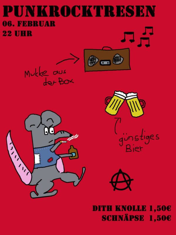 Den Stress und die Freuden der Feiertage könnt ihr ab 20 Uhr beim Karaoke aus voller Kehle herausgrölen! Gemeinsam schwofen wir dann aus den Feiertagen heraus. Rebel L versorgt uns den restlichen Abend mit feinstem Punk, Oi, Ska und was das Tanzbein sonst so zum Schwingen bringt.
